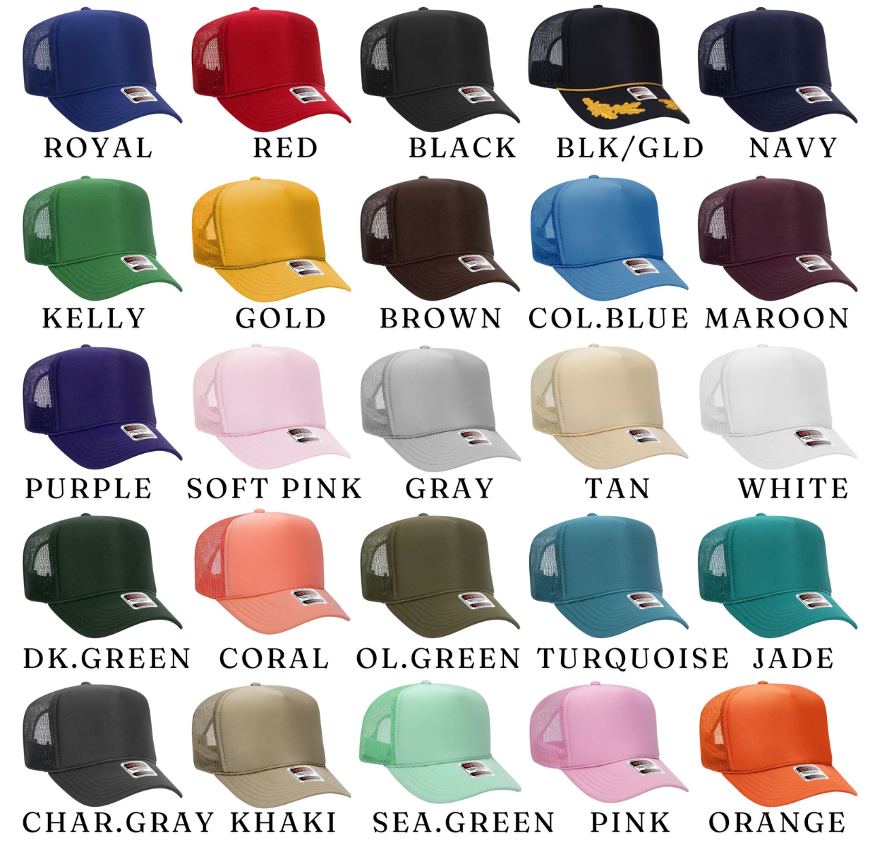 For customization options, simply add notes at checkout to request a different color option for your hat or thread.